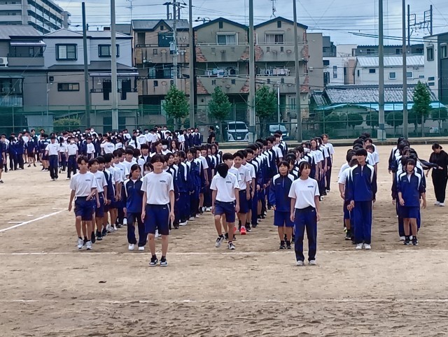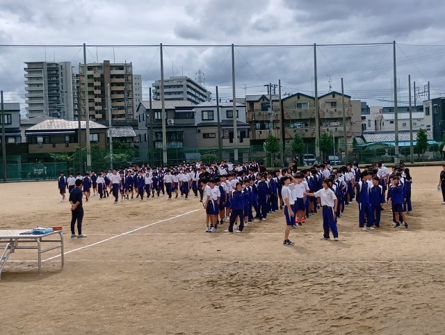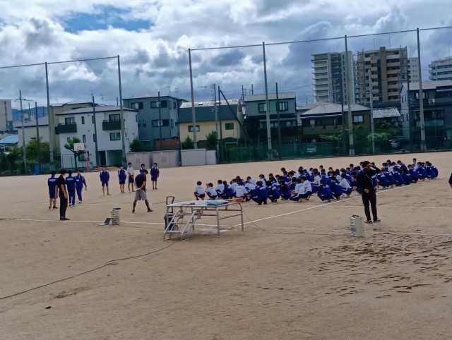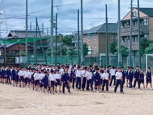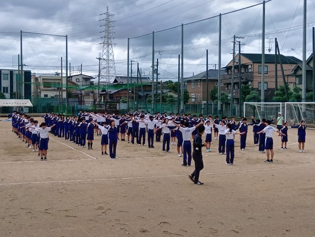 2時間目には赤団(1組)と黄団(2組)、3時間目には緑団(3組)と青団(4組)が、それぞれの団で練習に取り組みました。