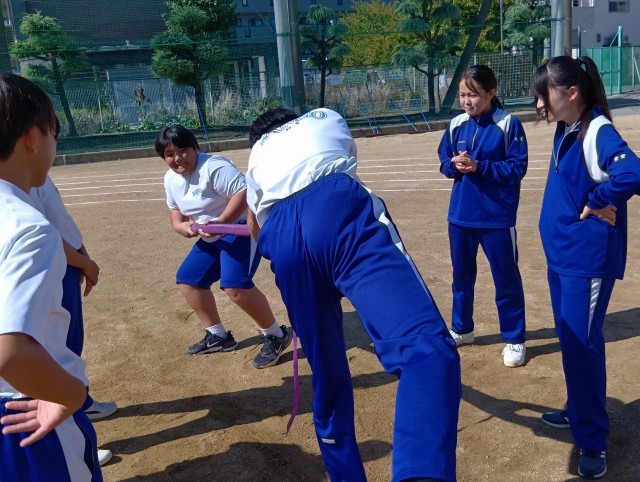学年混合でおこなう「団」種目として、全生徒がそれぞれ、ムカデリレー・綱引き・ダンシング玉入れ・選抜リレーの4つの種目に分かれて出場する予定です。