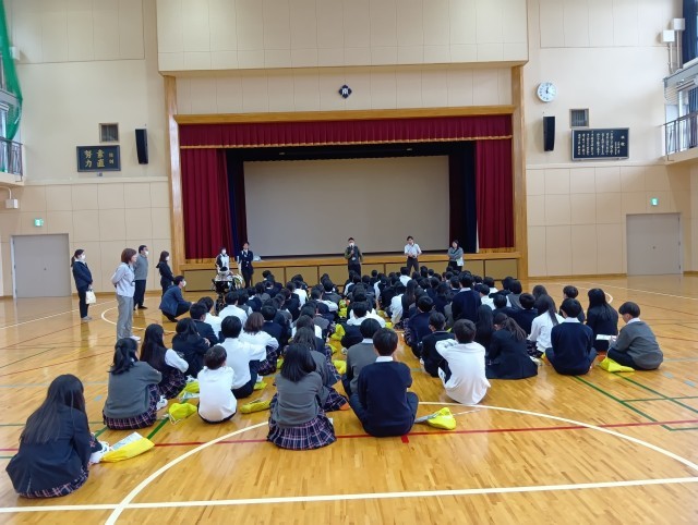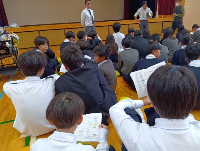 1年生は明日の校外学習(キャンピイだいとう)に向けて、直前の説明を受けていました。