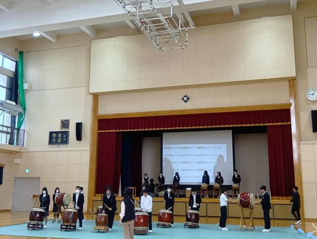 今日は3年生がクラスごとに体育館で和太鼓体験を行いました。