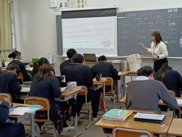 3枚め、2年生英語では、比較をする際の単語の変化について学んでいました。