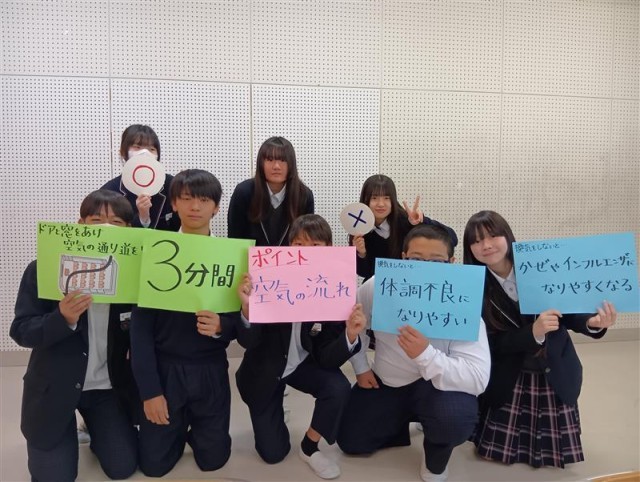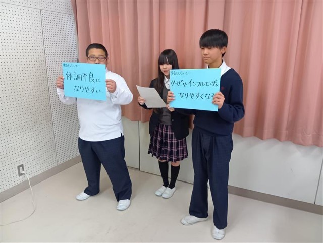 保健委員会からは、風邪やインフルエンザを予防するためにしっかりと換気をして空気の流れをつくろうと呼びかけました。