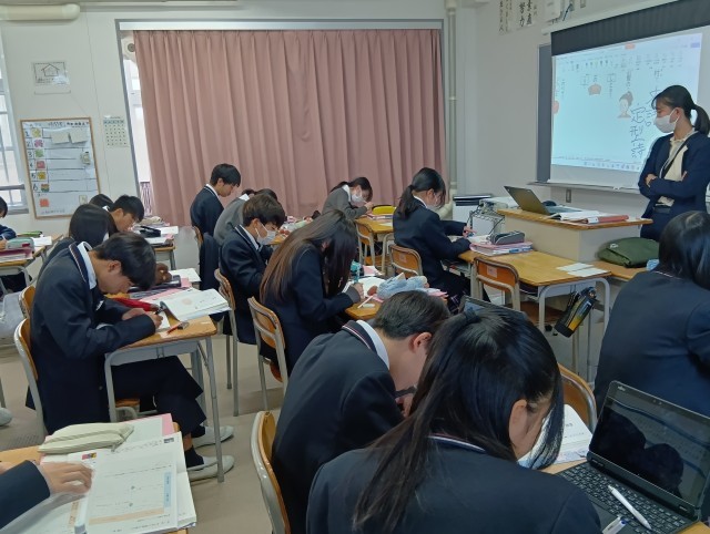 3年生では、期末テストは終わりましたが、集中して授業に取り組めていました。
