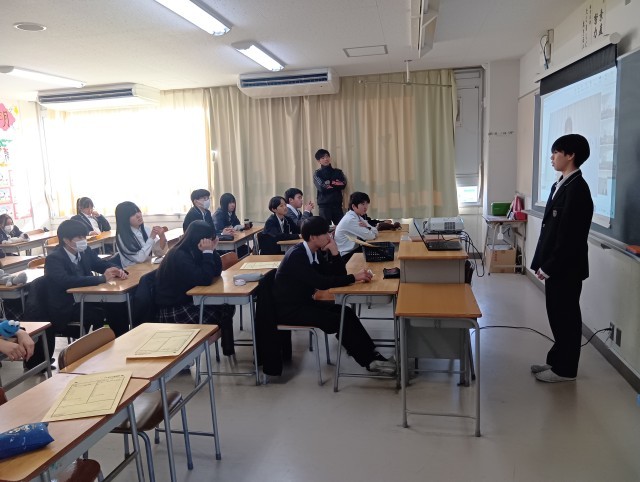 2年生はリモート形式でおこないましたが、学級委員はメモも見ずクラスや学年のことを話していました。3年生への進級に向けての心構えの話もありました。