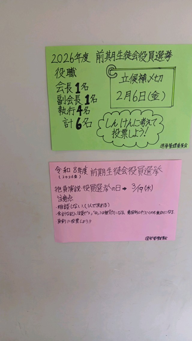 写真は図書委員会や美化委員会、選挙管理委員会の掲示物です。