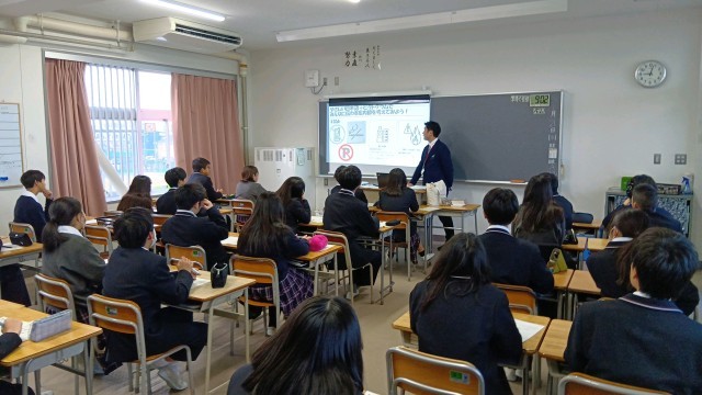 1年生は、多文化共生に関する授業でした。「相手の立場になって考え、みんなが過ごしやすい学校づくりを考える」というめあてを持って、ピクトグラムを作成します。