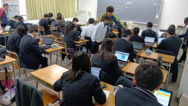 2年生は、2学期に実施した職場体験の報告会での発表に向けた資料づくりに取り組んでいました。
