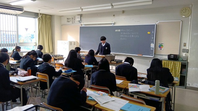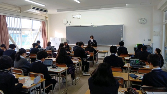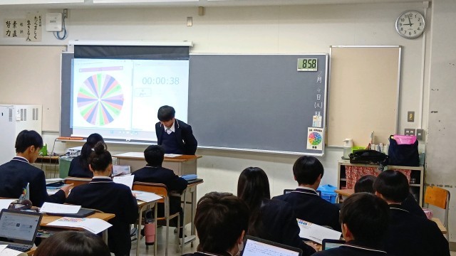 1時間目、1年生は全クラスで「SDG’S」について、各自調べた内容を発表していました。