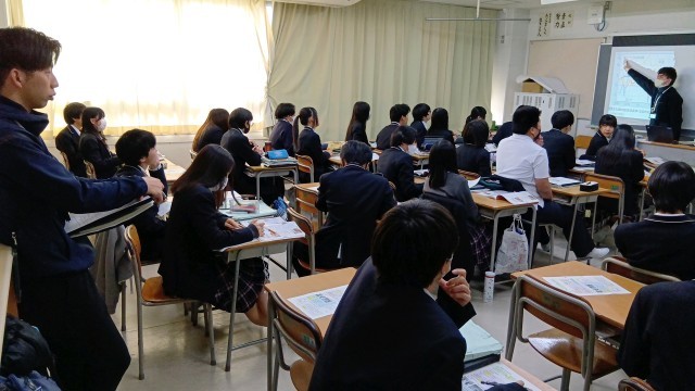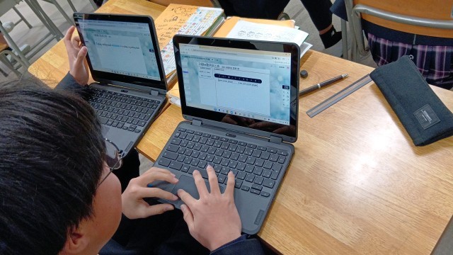 今日の授業の様子です。今週は、教員の授業参観交流週間として、教員がお互いの授業を見合って授業スキルを高めることに挑戦しています。