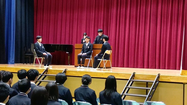 初日の今日は、卒業式実行委員が見本となり、礼法などの動作一つひとつについて確認しました。