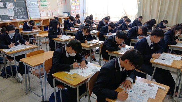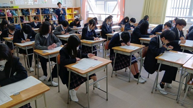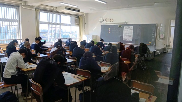 どのクラスも静かで落ち着いた雰囲気のなか、テストに臨んでいました。