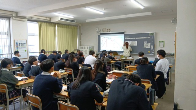 本日の食育の授業では、栄養教諭の先生をお迎えし、「丈夫な骨をつくることの大切さ」をテーマに学習しました。授業では、年齢と骨密度の関係を示したグラフを用いて、中学生の時期が将来の骨量を大きく左右することを学びました。
