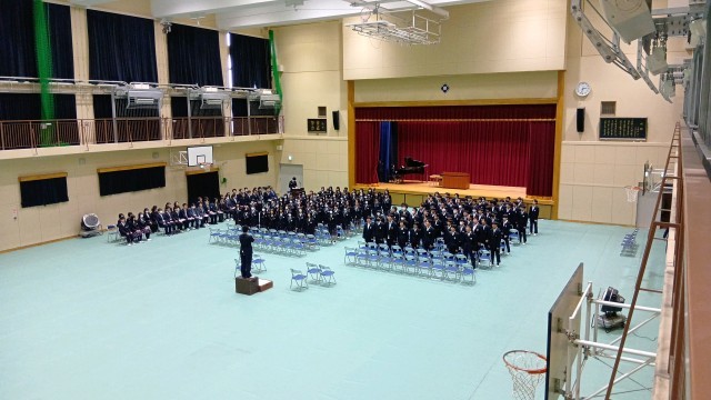 本番を見据え、会場にはほどよい緊張感が漂い、卒業式にふさわしい厳粛な雰囲気の中で実施することができました。