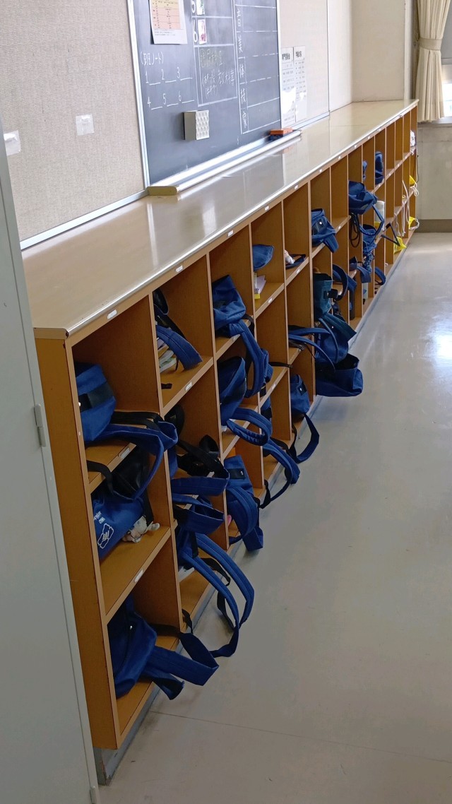 7枚めは、1年生の教室後方のロッカーです。カバンやシューズ袋など、きれいに片づけています。