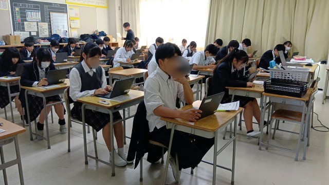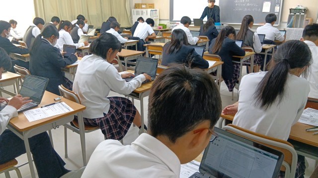 今回は生徒配付のクロムブック端末を利用したオンライン方式でおこなわれました。