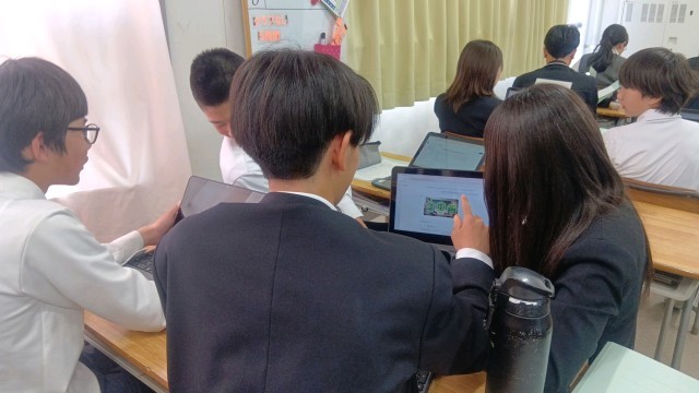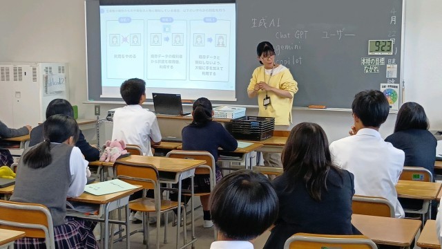 2年生は、情報モラル学習で、著作権や情報の正確さを確かめることの大切さ、生成AIについての学習をしていました。