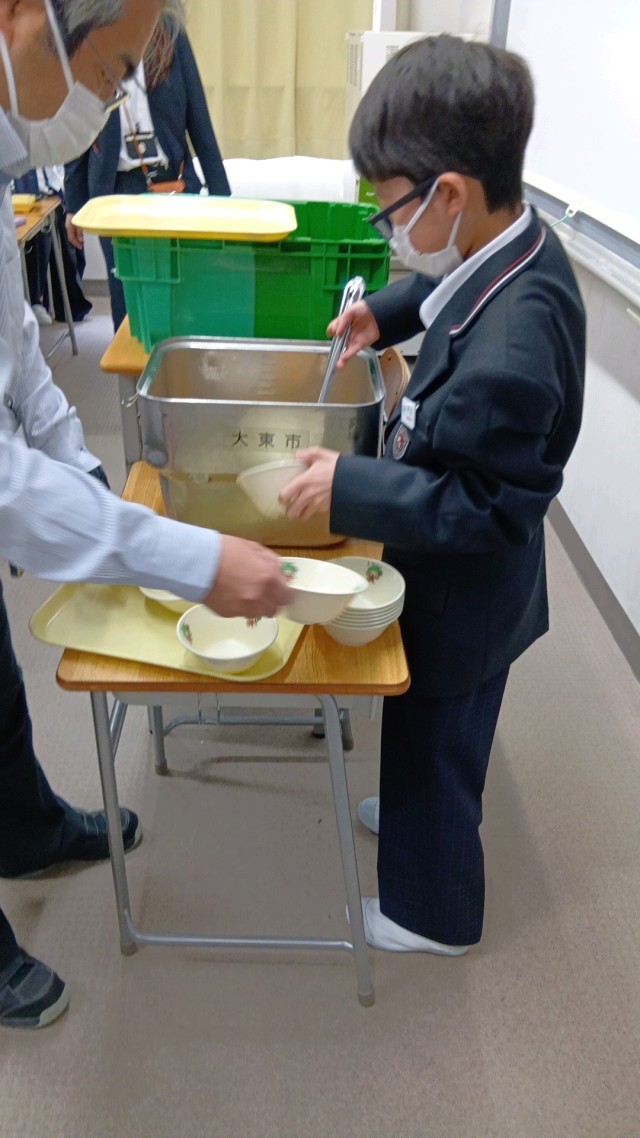 今日は今年度初めて、食缶で汁物が配膳される給食でした。