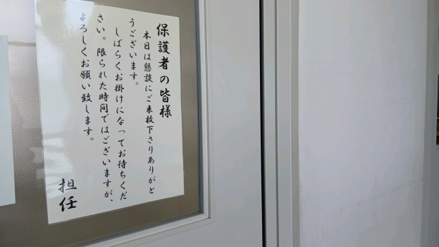 担任から、この1か月の学校生活のがんばっている様子をお伝えしたり、保護者の方からおうちでの様子等をお伺いしています。