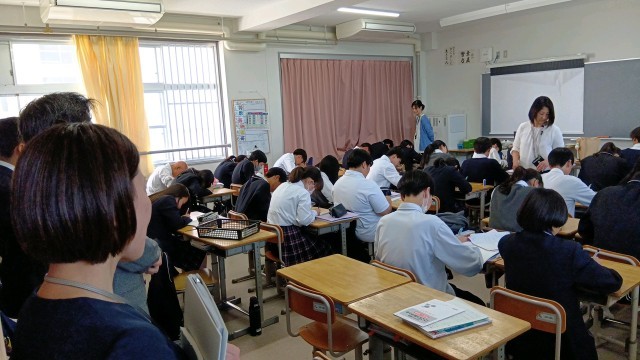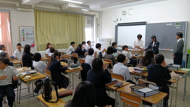 今日は、名城大学の教授や大東市教育委員会の方にも見学していただきました。南中生がまじめに授業に取り組む様子や、班長もクラスメイトも班活動を大切にしている様子など、たくさんほめていただきました。