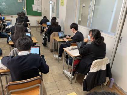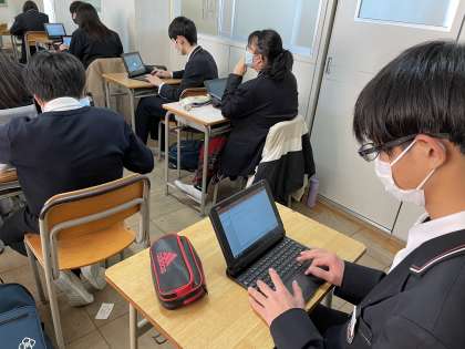 この間配付されたタブレットを使って、パワーポイントでプレゼンテーションの英文原稿を作成しています。