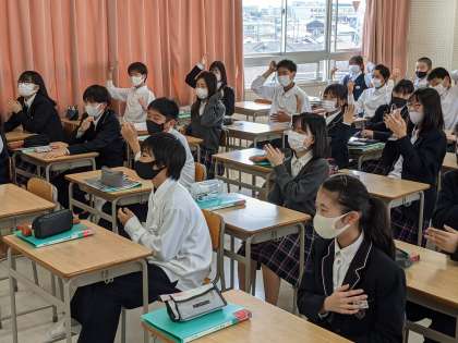 音楽の授業では、感染防止の観点から大きな声を出して歌ったり、リコーダーを吹いたりという活動を控えています。
