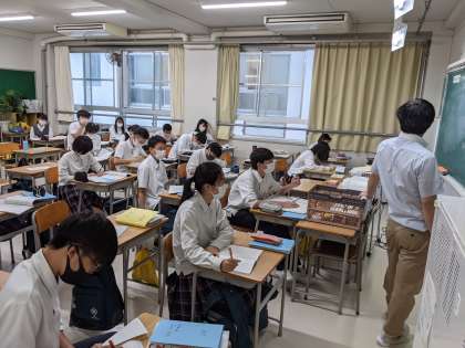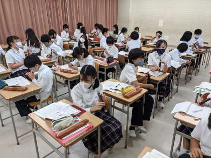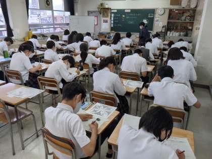 写真は、上から2年生の美術、1年生の音楽、3年生の数学です。