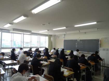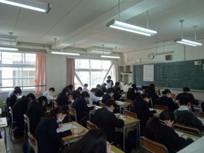 今日は3年生が全国学力・学習状況調査、1、2年生が大東市共通到達度確認テストに取り組んでいます。