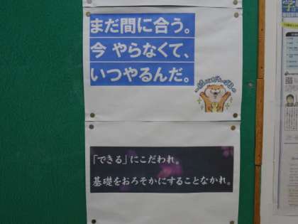 2年生のフロアーに、「まだ間に合う。今やらなくて、いつやるんだ。」という言葉が掲示していますが、まさに今が頑張りどころです。