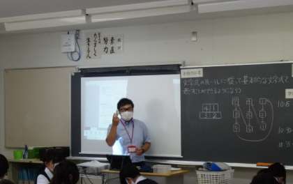 まず課題について学習班で話し合い、その内容を学習班の中の1名が隣の班へ移動して説明をするといった授業展開でした。