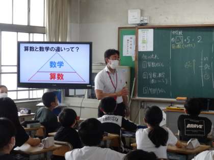 今日、午後から本校の教員が南郷小学校に訪問し、出前授業を行いました。