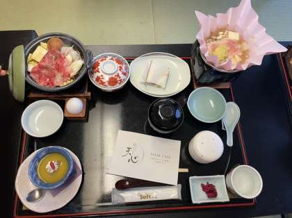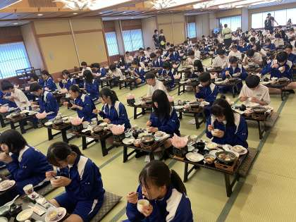 2日目の夕食です。昨日は修学旅行メニューでした。今日は温泉旅館の会席料理をいただきます。