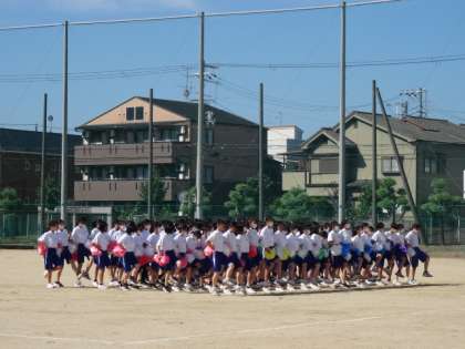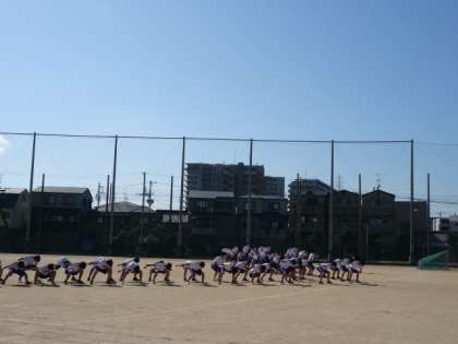 明日へと延期になった体育大会に向けて、3年生がダンスと集団演技の練習を行いました。