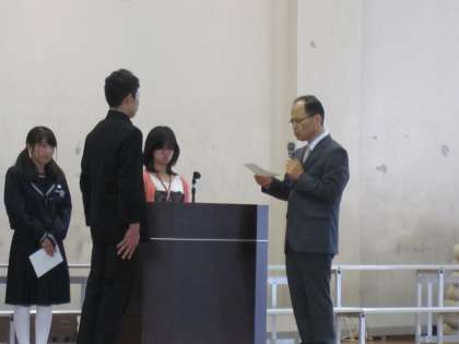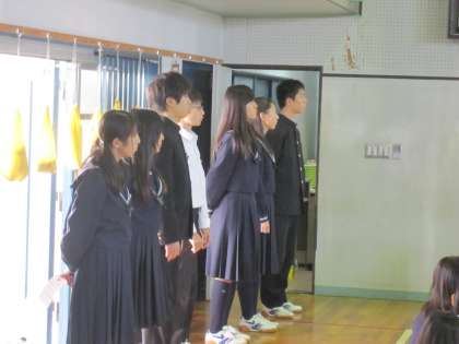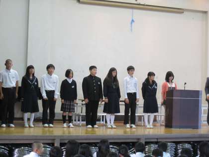 また、より過ごしやすい南郷中づくりのために様々な取組みを提案し、実行してくれた前期役員に生徒全員で感謝の気持ちを込めて拍手を送りました。