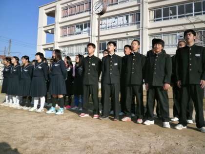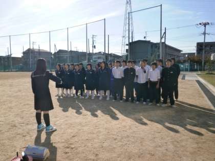 様子を見に行くのが遅れたので、体育館の中に入った時には1組のリハーサルは終わっていました。ゴメンナサイ ! 今朝の運動場での早朝練習の様子です。