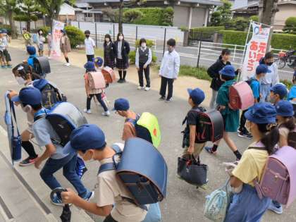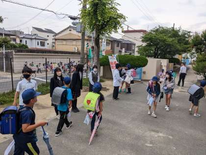 今日は、氷野小学校に出前あいさつ運動に行ってきました。