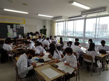 1年生は校外学習に向けた取り組み、2年生は先日実施した宿泊学習のまとめ、3年生は修学旅行に向けた取り組みを行っています。