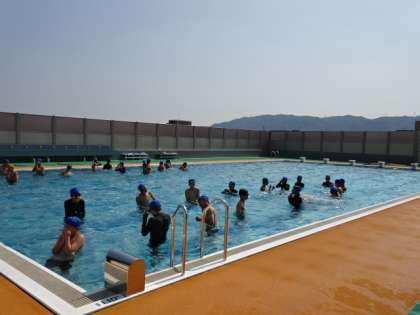 今年、初めてプールに入った生徒もたくさんいて、みんな楽しそうに授業を受けていました。