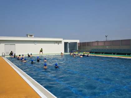 南郷中学校のプールは体育館の上にあり、まだ新しくてとてもキレイなプールです。