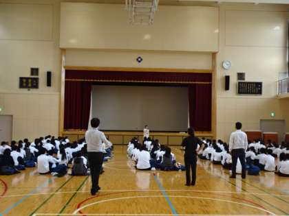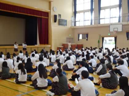 6時間目、体育館に集まって修学旅行に向けた最終確認が行われました。