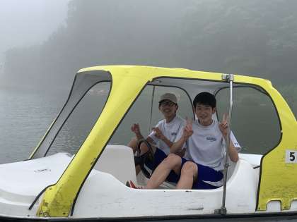 六甲山なので霧がすごいですが、楽しそうにしています。