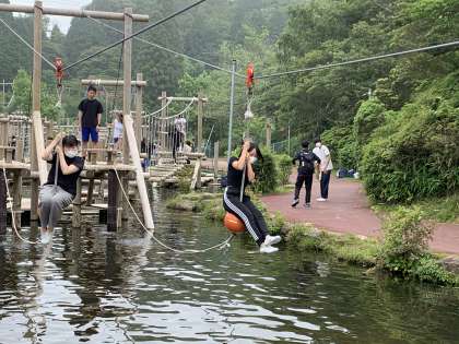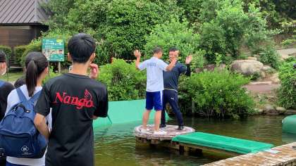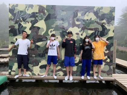 水上アスレチックが人気です。
