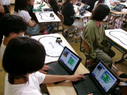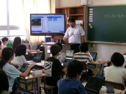 1組では色鉛筆を用いて色塗りの手法を学習しました。2組ではタブレット端末を用いてプログラミングの基礎を学習しました。