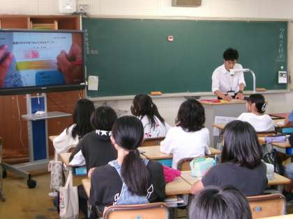 小中一貫の取り組みとして中学校の教員が校区内の氷野小学校へ授業をしに行きました。