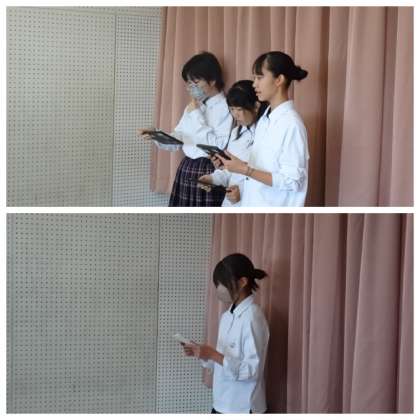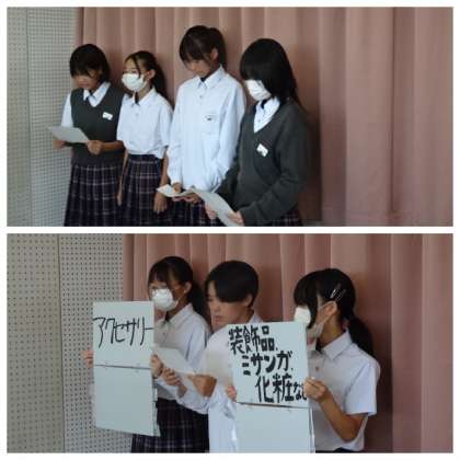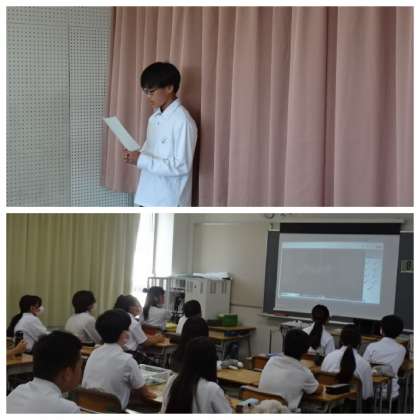 続いて、専門委員会からは、3年生と1年生の学級委員会が前期の活動を振り返り、体育大会への意気込みと共に、学年をより良くするための新たな取り組みについての報告、また風紀委員会からは体育大会に向けて風紀チェックを行うことを画用紙を用いてわかりやすく説明してくれました。