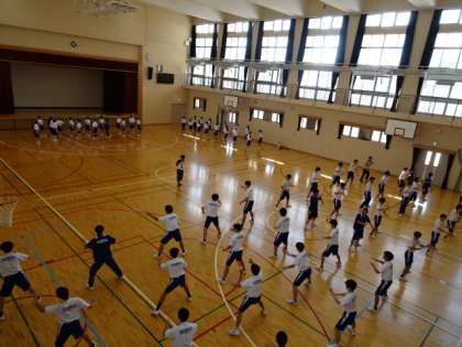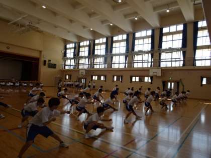 2時間目、3年生は体育大会のダンスの練習をしました。男子は全員で、女子はクラス別に分かれて練習を行いました。体育大会当日、皆さんがどのようなダンスを披露されるのか、とても楽しみです。