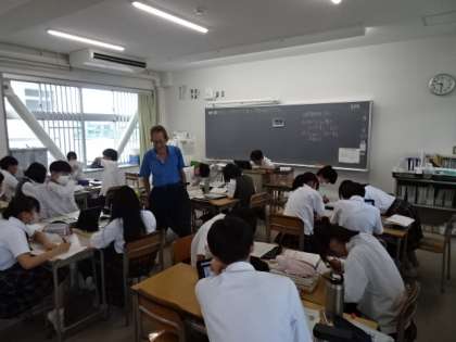 3年4組は数学で、学習班になってお互いに協力しながら学び合い学習に取り組んでいました。