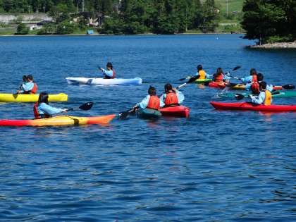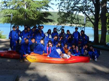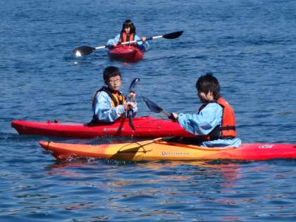 カヌーの様子です。少し、怖そうな表情の生徒もいますが、楽しそうにチャレンジしています。