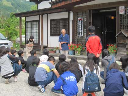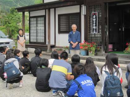 一晩お世話になった宿舎の方に、クラス代表がお礼のあいさつをしています。
