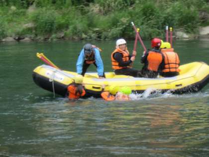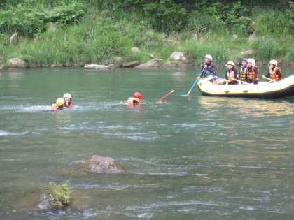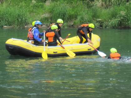最初は少し怖がっている生徒もいましたが、だいぶ慣れてきたようです。ボートから川に自分から落ちて(?)楽しむ生徒もいます。