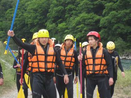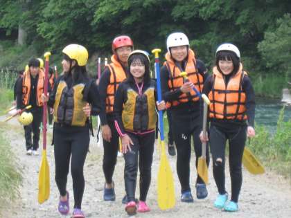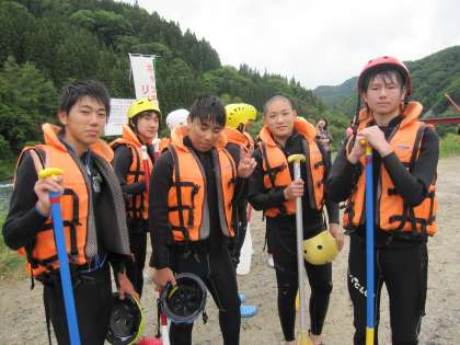 ラフティングを終えた生徒の満足感あふれる表情です。いい笑顔です。